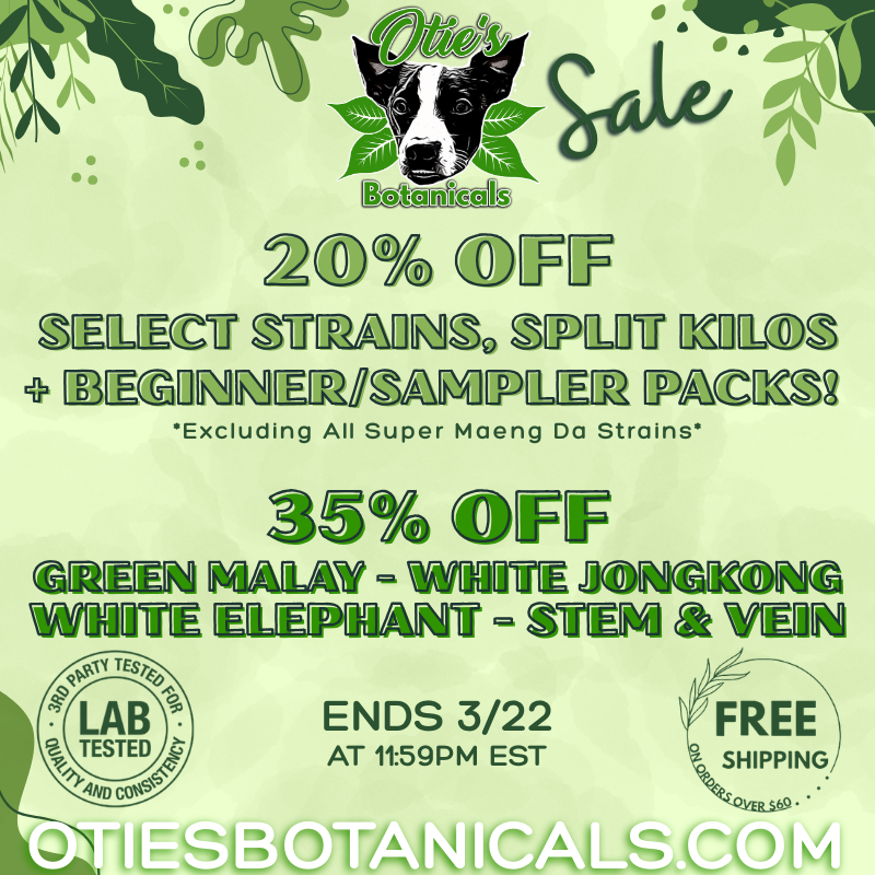 Try every regular strain of Kratom we carry! Not sure what strain to choose? This sampler is for you! You get 17 10g Samples in total! Super White Maeng Da, White Jongkong, White Hulu, White Elephant, Super Green Maeng Da, Super Green, Green Malay, Green Dragon, Super Red Maeng Da, Red Bali, Red Malay, Red Bentuangie, Red Gold, Super Gold, Gold Bali, Yellow Borneo and House Mix. **IF A STRAIN IS OUT OF STOCK, YOU WILL RECEIVE A DUPLICATE SIMILAR STRAIN AS A REPLACEMENT** Mitragyna Speciosa (Kratom) is a tropical evergreen tree part of the coffee family native to Southeast Asia. It can be found in countries such as Thailand, Indonesia, Malaysia and a few others. All Otie's Botanicals Kratom Powder products are milled perfectly down to the micro level for faster absorption and more satisfying effects. Ingredients: Mitragyna Speciosa